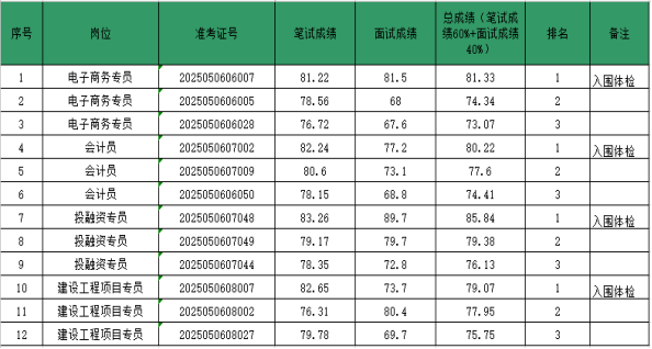 揭陽市揭東經(jīng)濟(jì)開發(fā)區(qū)新區(qū)投資有限公司2025年公開招聘工作人員考試成績和入圍名單的公告